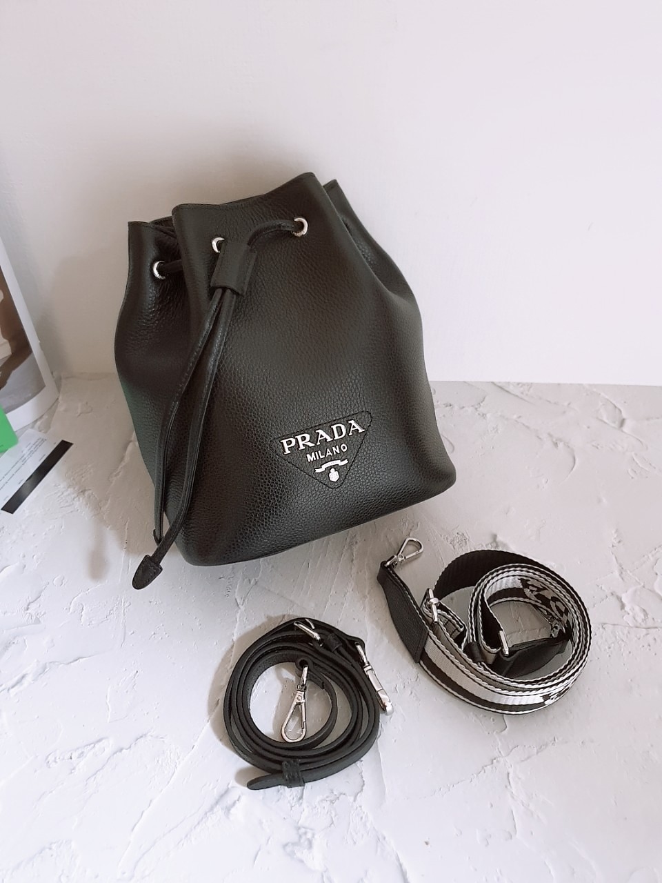 프라다 가죽 플로 버킷백