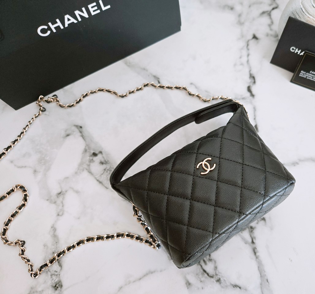 샤넬 25 크루즈 캐비어 스몰 체인 호보백 블랙 / 화이트