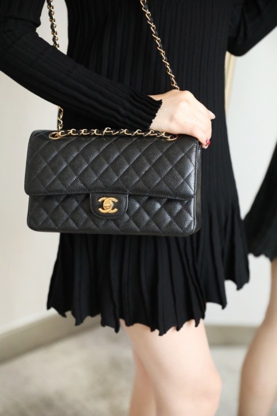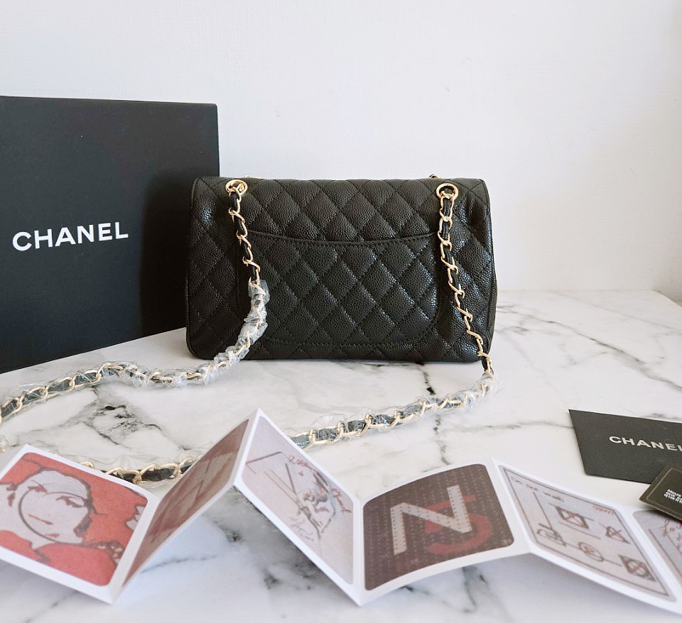 샤넬 리뉴얼 클래식 캐비어 미듐 금장