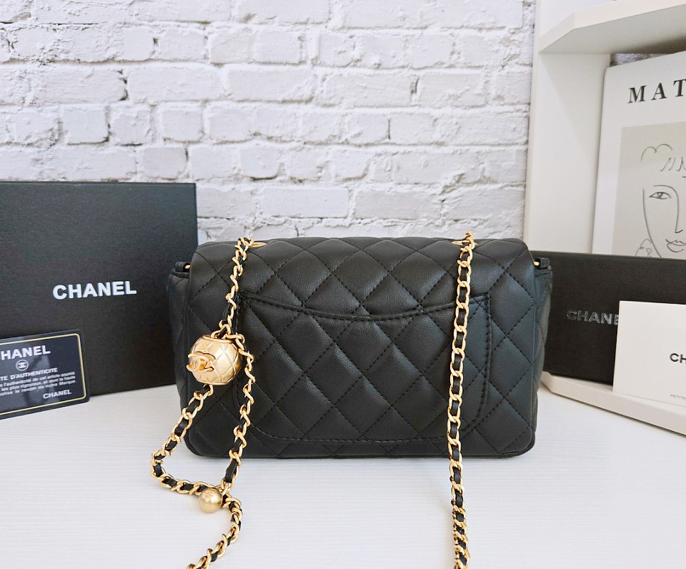 샤넬 뉴미니 골드볼 램스킨 블랙