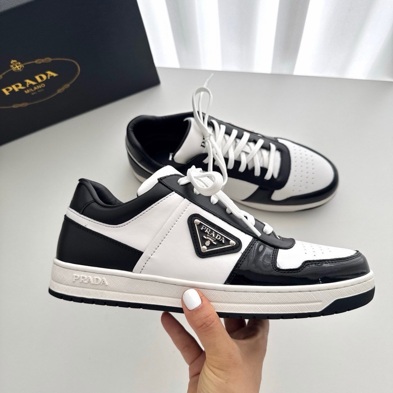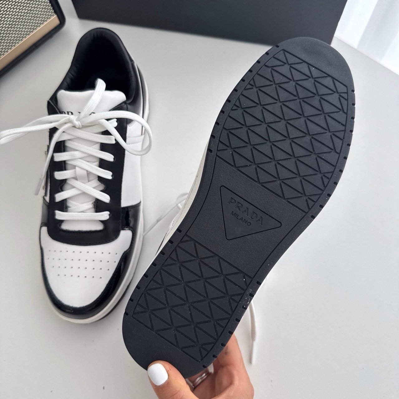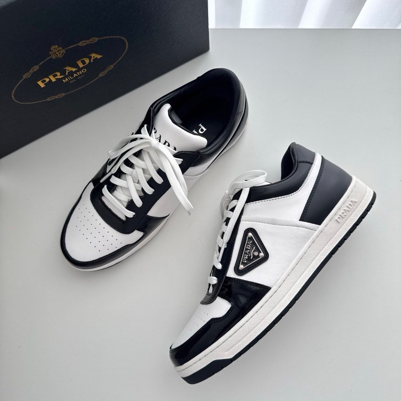 프라다 다운타운 레더 스니커즈