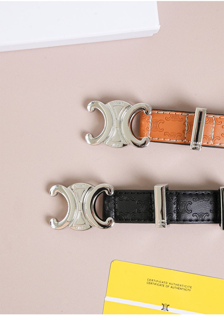 셀린느 트리옹프 아크웍 레더 벨트 은장