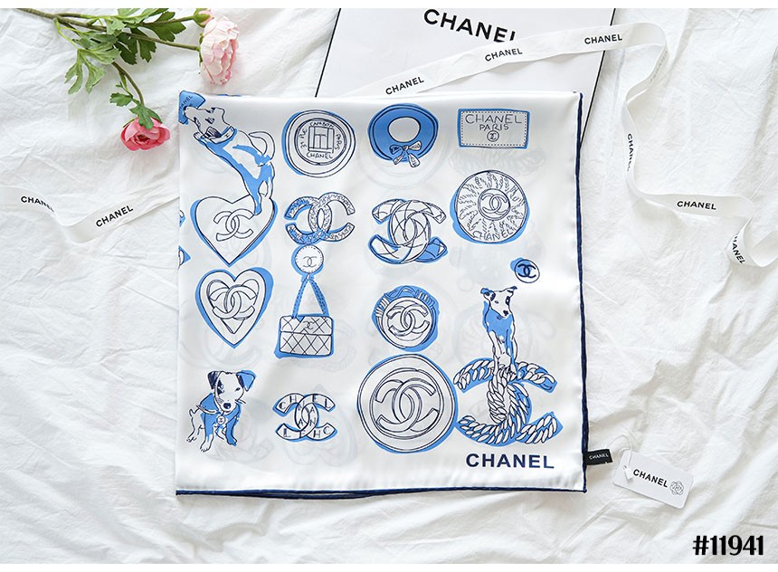 샤넬 23SS 달마시안 강아지 CC 로고 스퀘어 실크 스카프