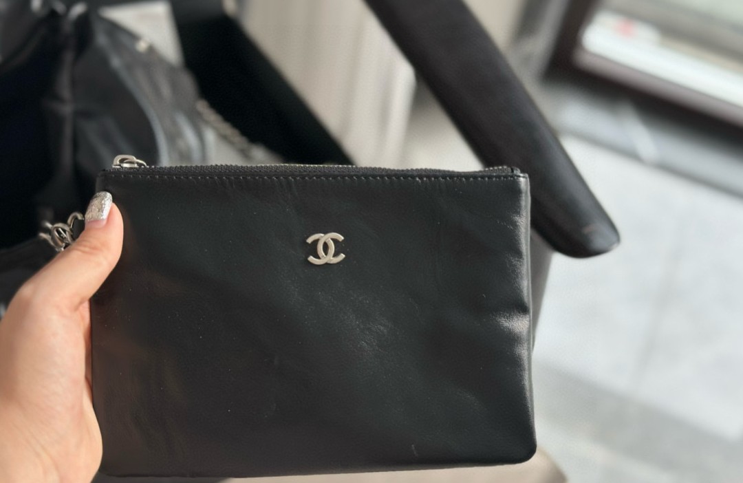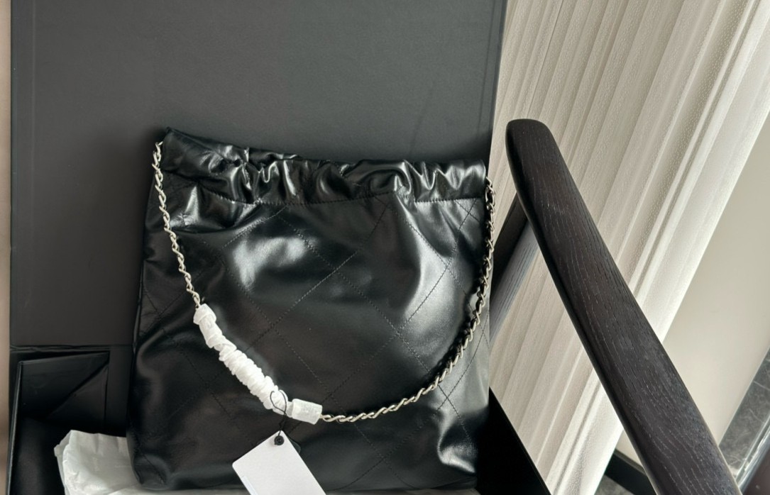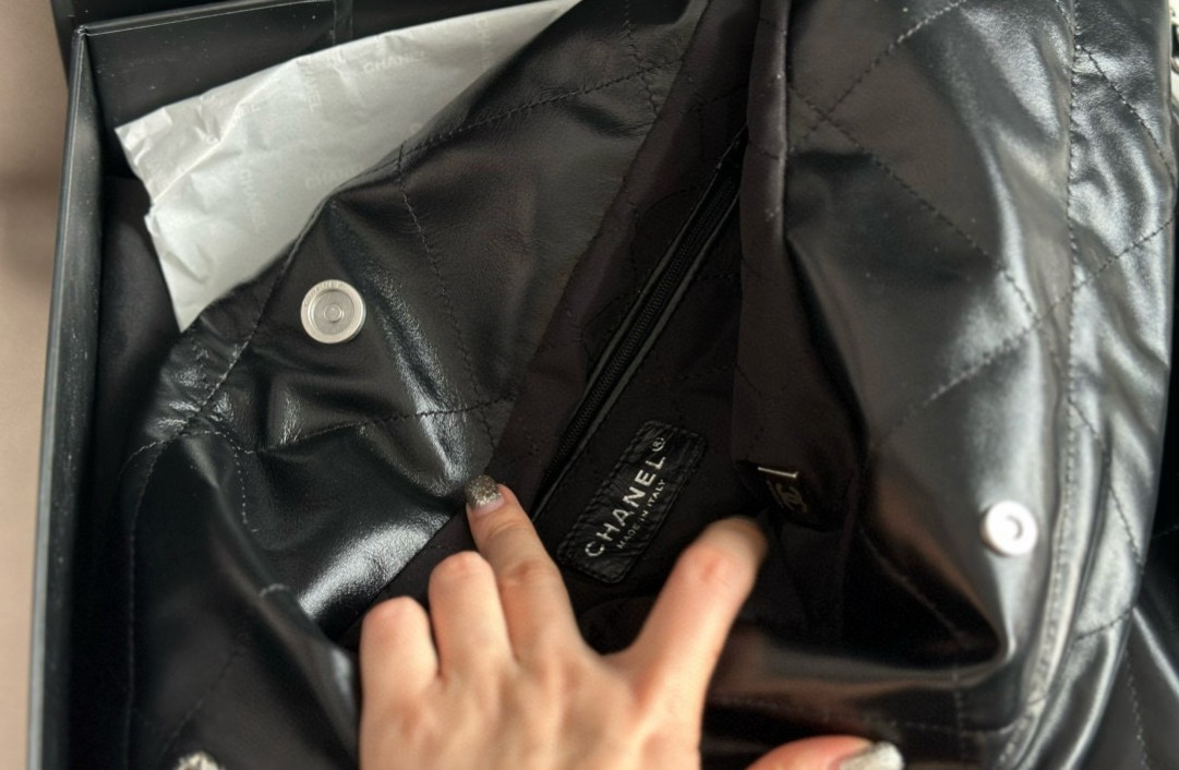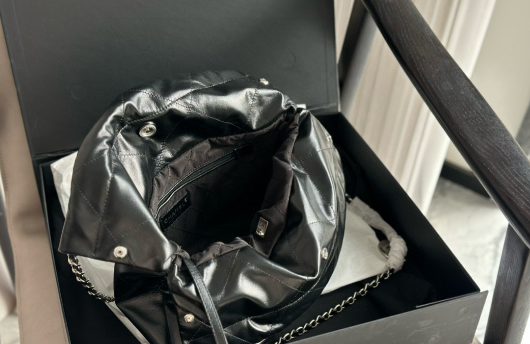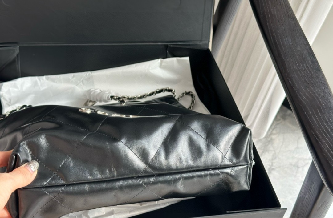 샤넬 22백 유광 카프스킨 실버 메탈 블랙