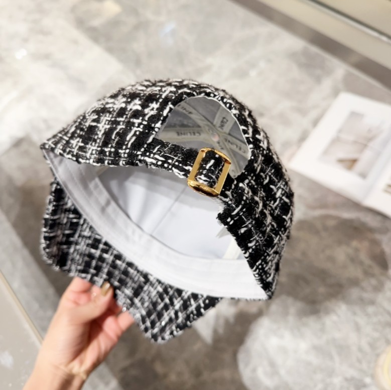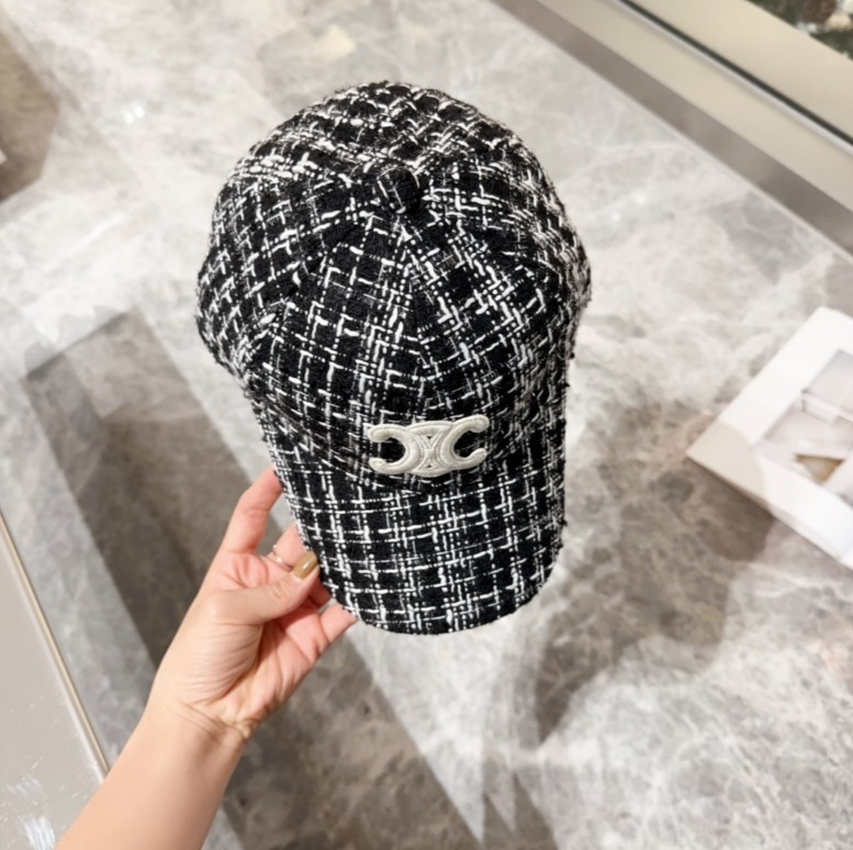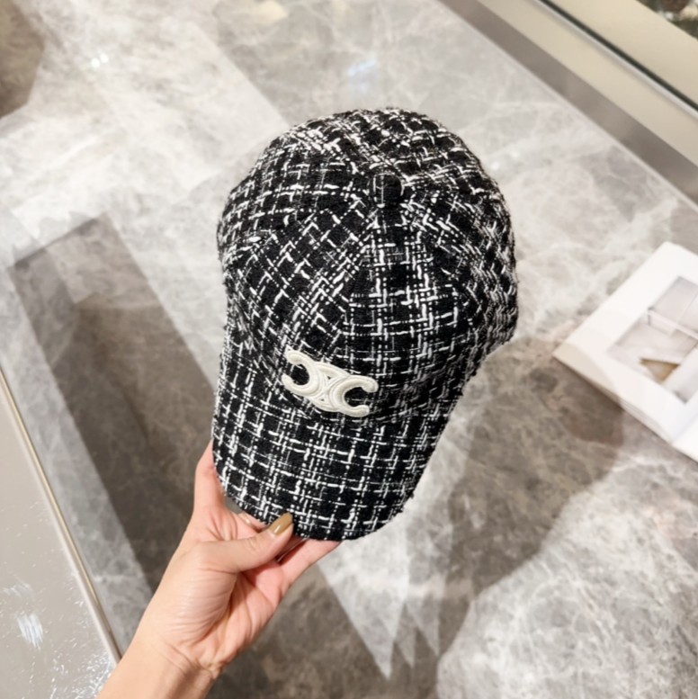 셀린느 신상 체크 트위드 울 볼캡 캡모자