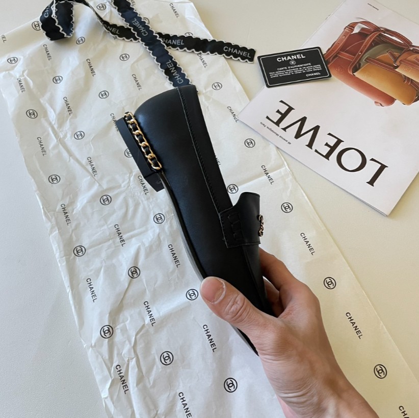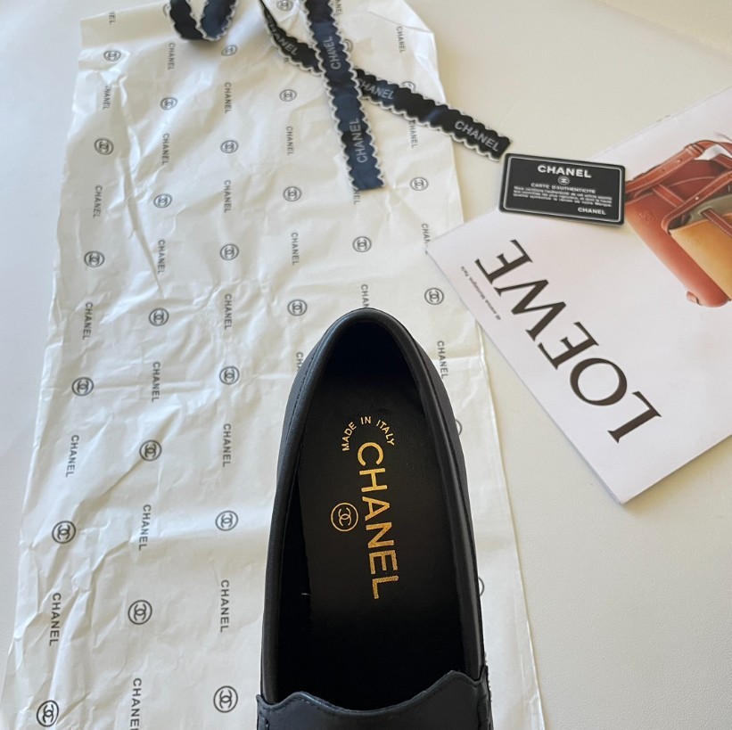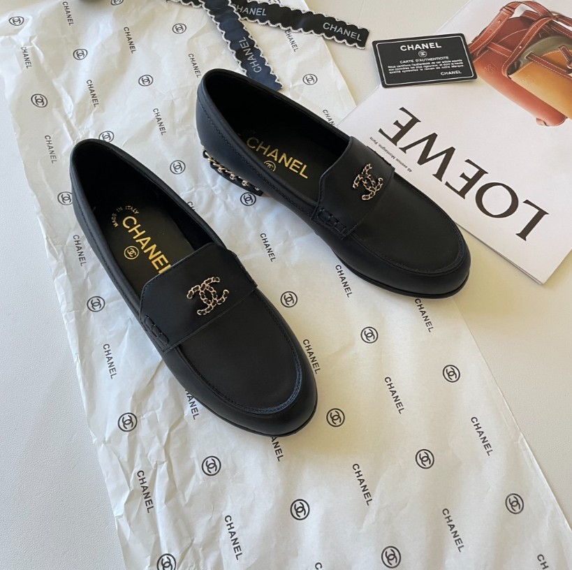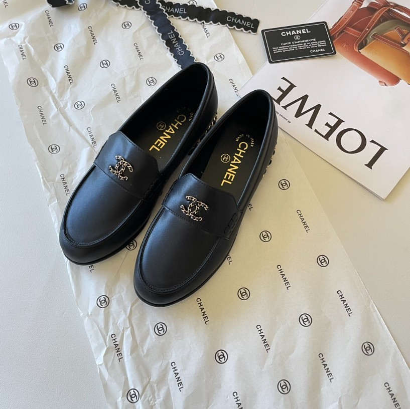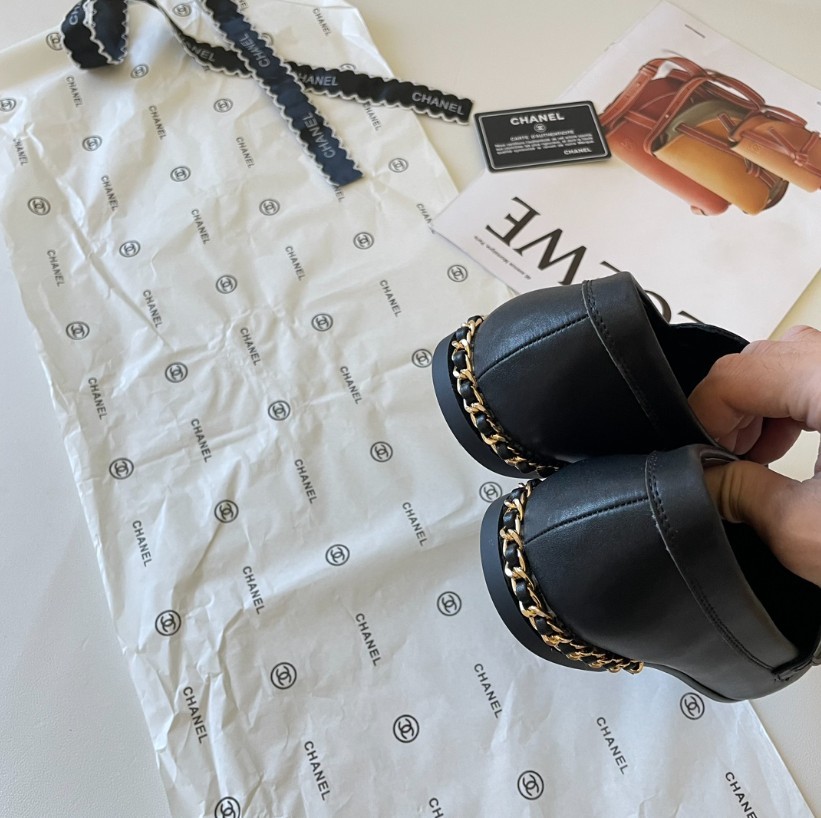 샤넬 19 체인 CC로고 모카신 레더 로퍼